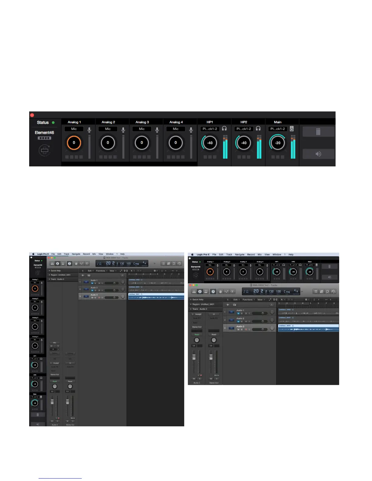 All Analog Input Channels and Monitor output controls are represented in the Essentials bar. The small buttons below the Gain