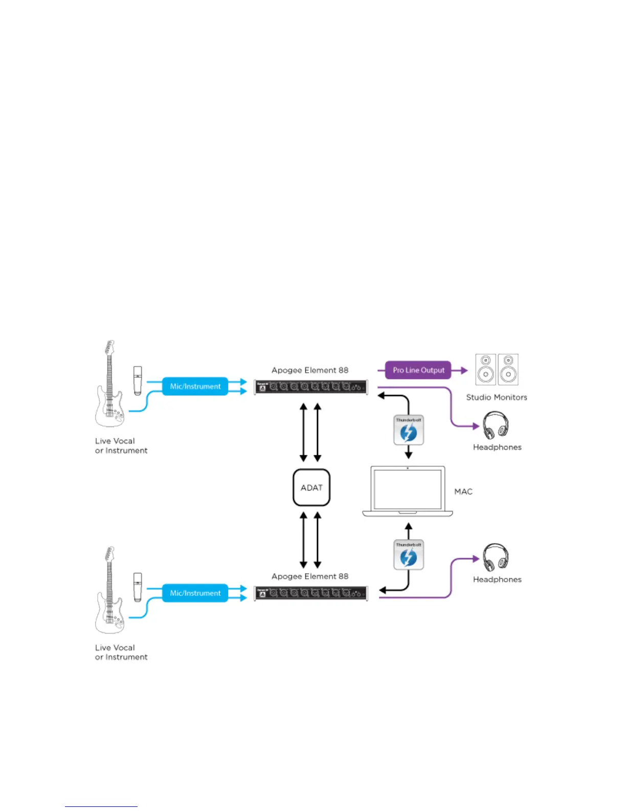 ● Element interfaces may be connected directly to your Mac or after dual-port Thunderbolt peripherals