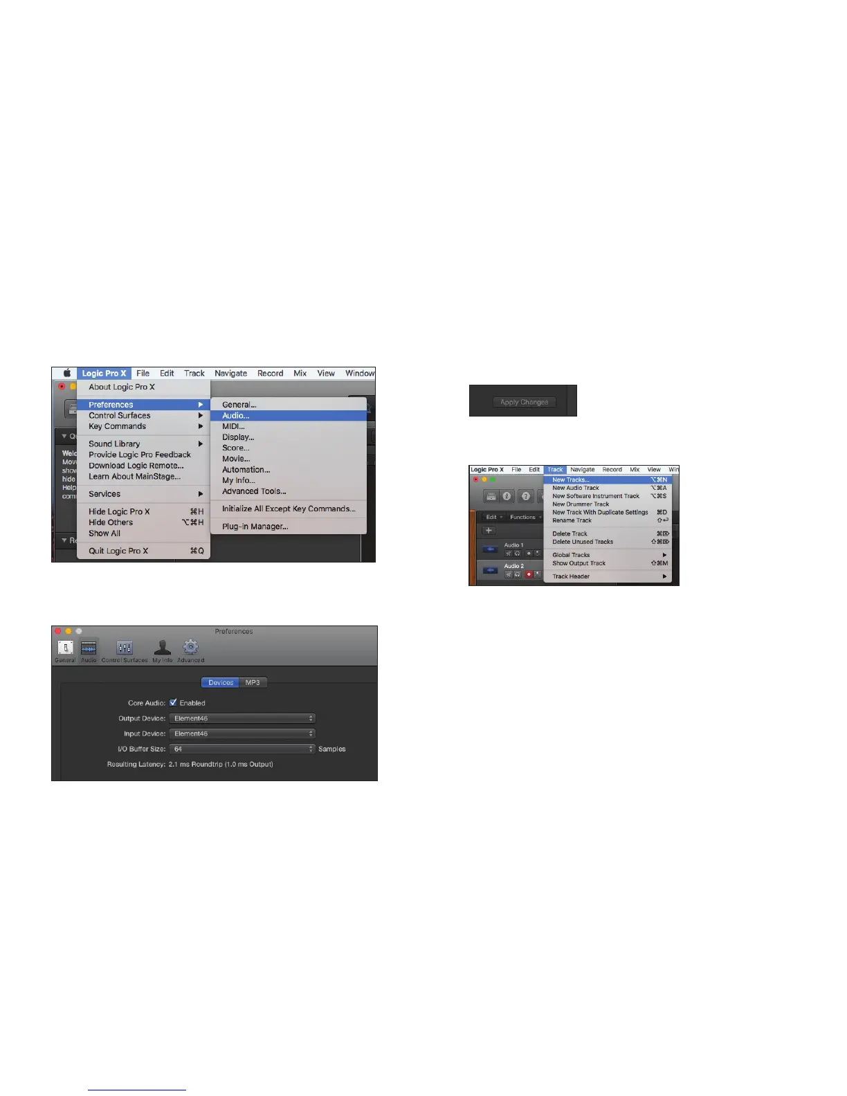 1. Go to Logic Pro X > Preferences > Audio. 3. Select “Apply Changes” and close the