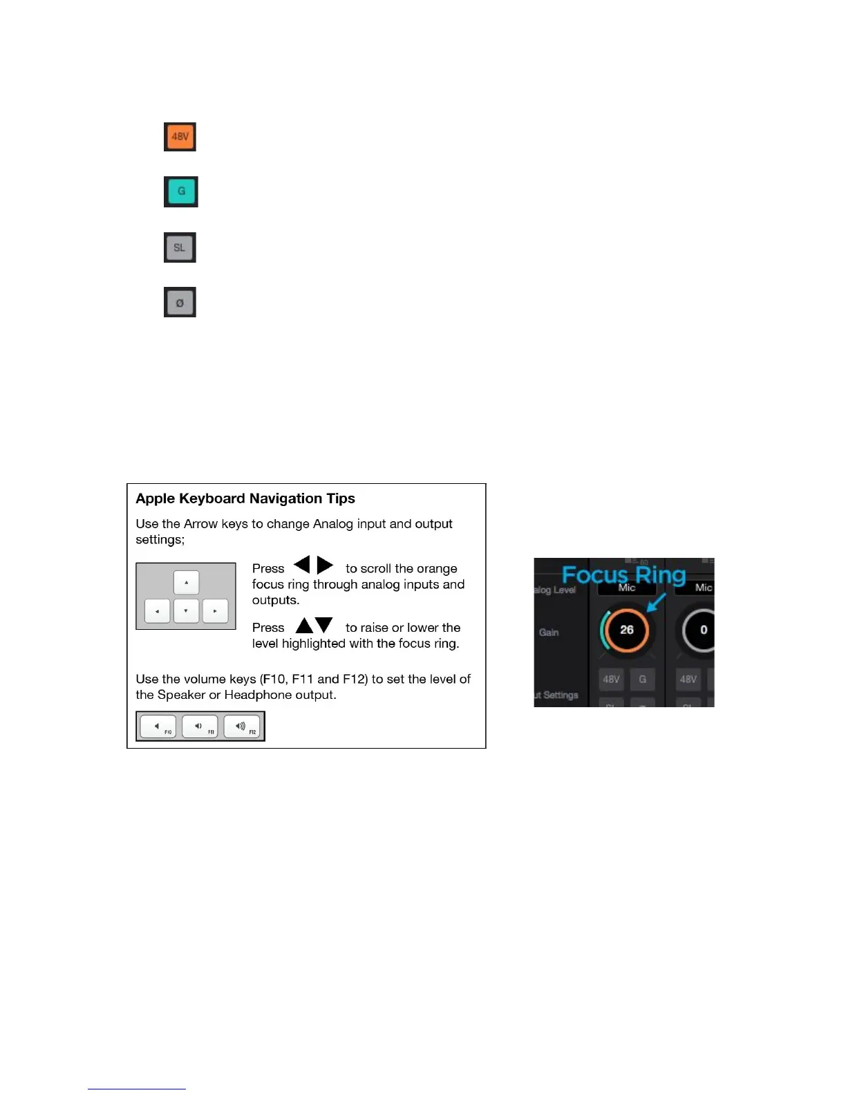 ● : Use this button to enable 48 volt phantom power on the corresponding Analog In channel. Condenser
