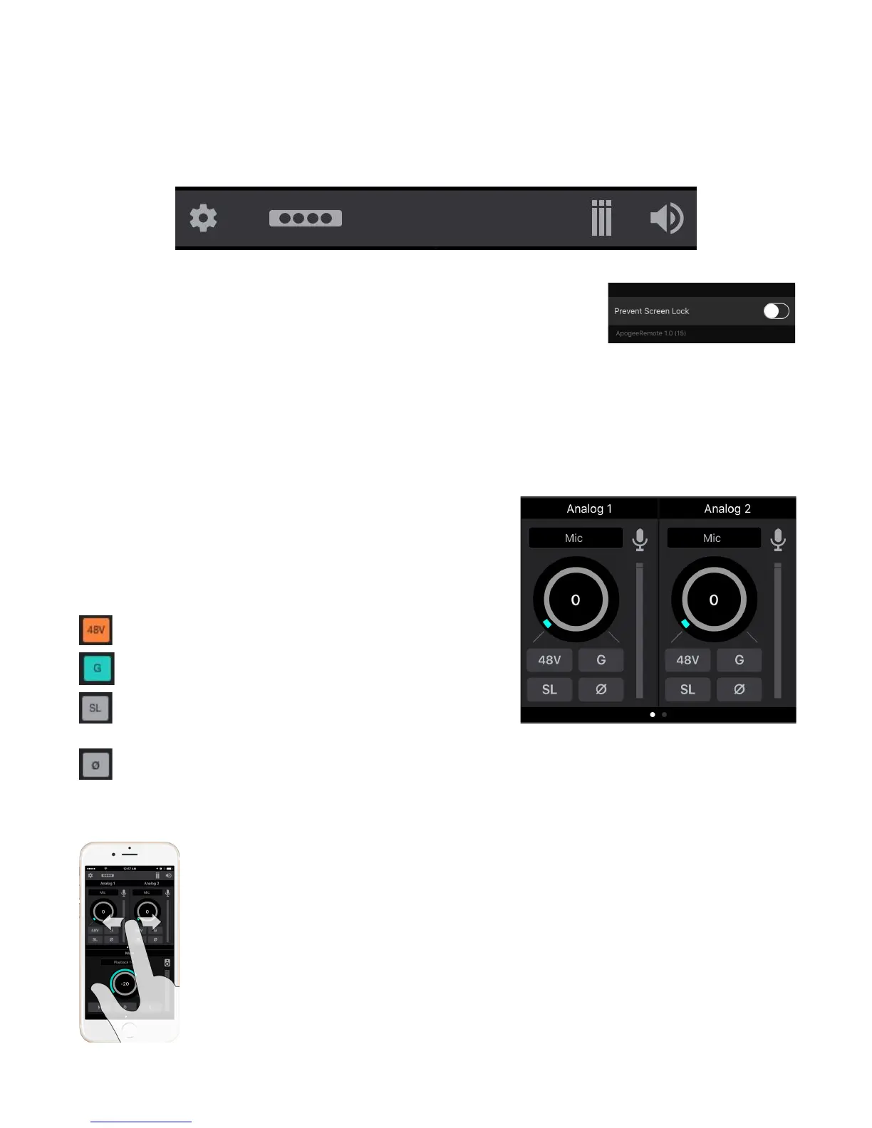 Gain - Drag your finger up or down on the gain circle to adjust the Input Gain