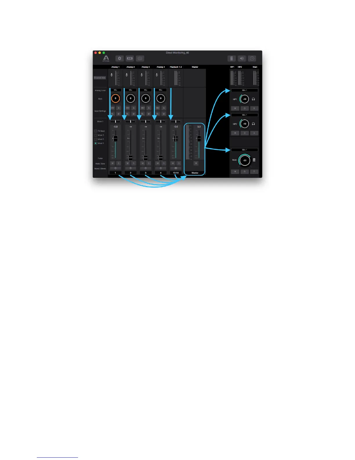 Mixer 1. In this way, this Direct Monitoring Snapshot can be used with a DAW that is unable to achieve a low enough buffer