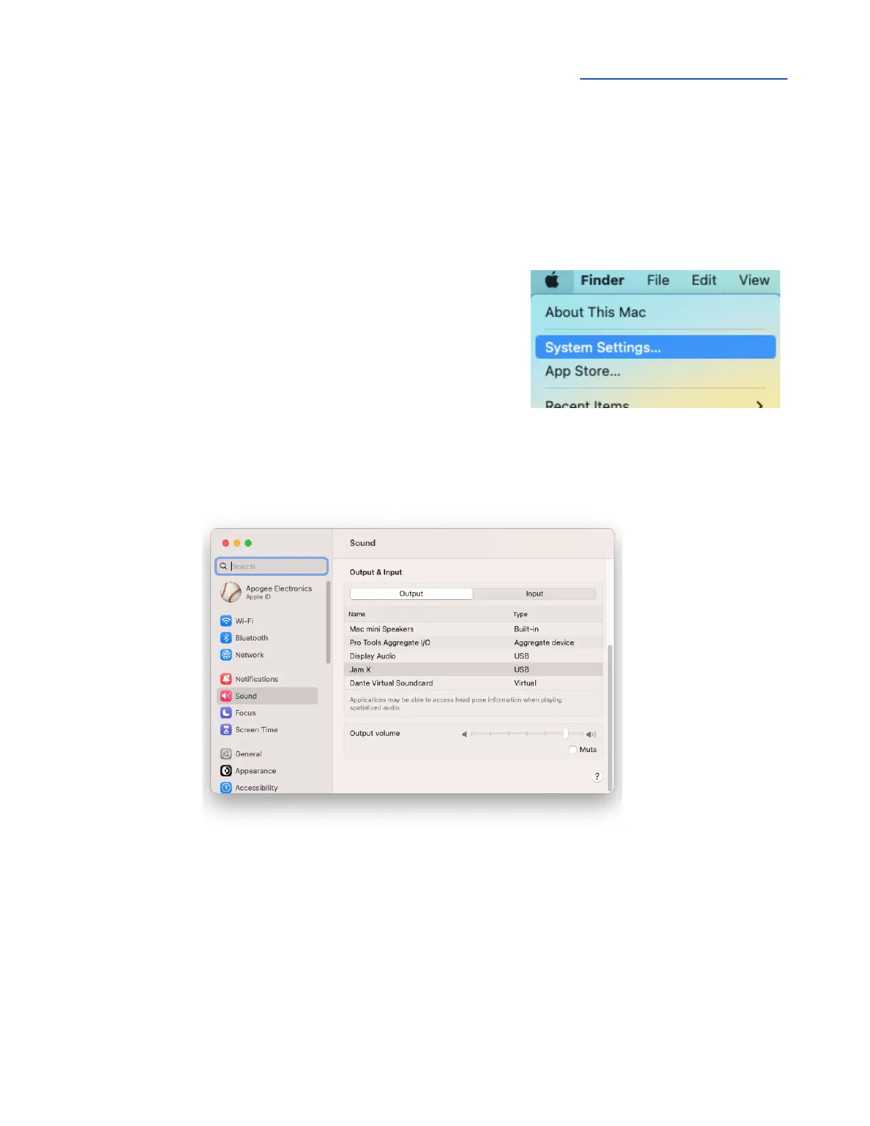 To choose Jam X as the audio interface for Mac applications that don’t have specific audio hardware