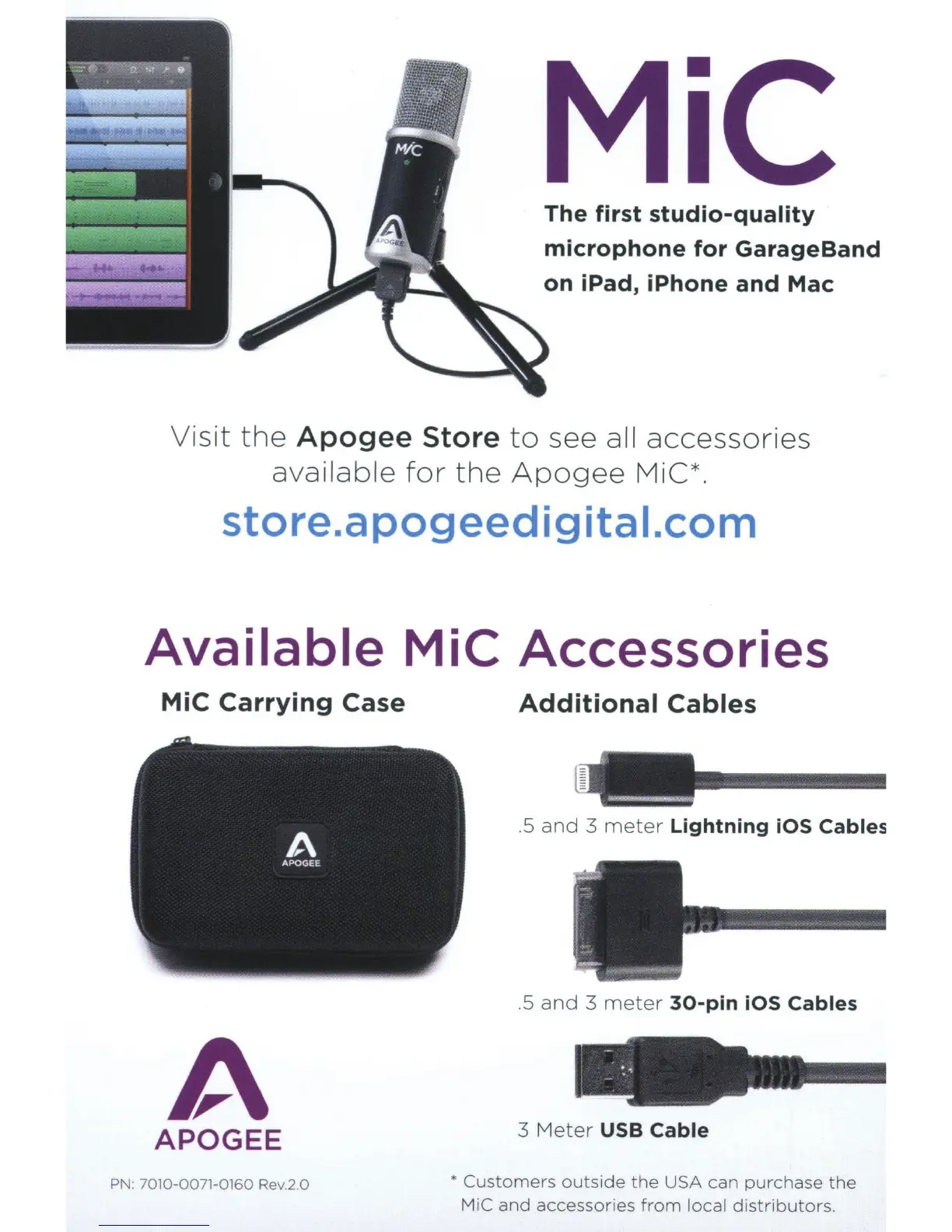 Apogee MiC - Available MiC Accessories; MIC Carrying Case; Additional Cables