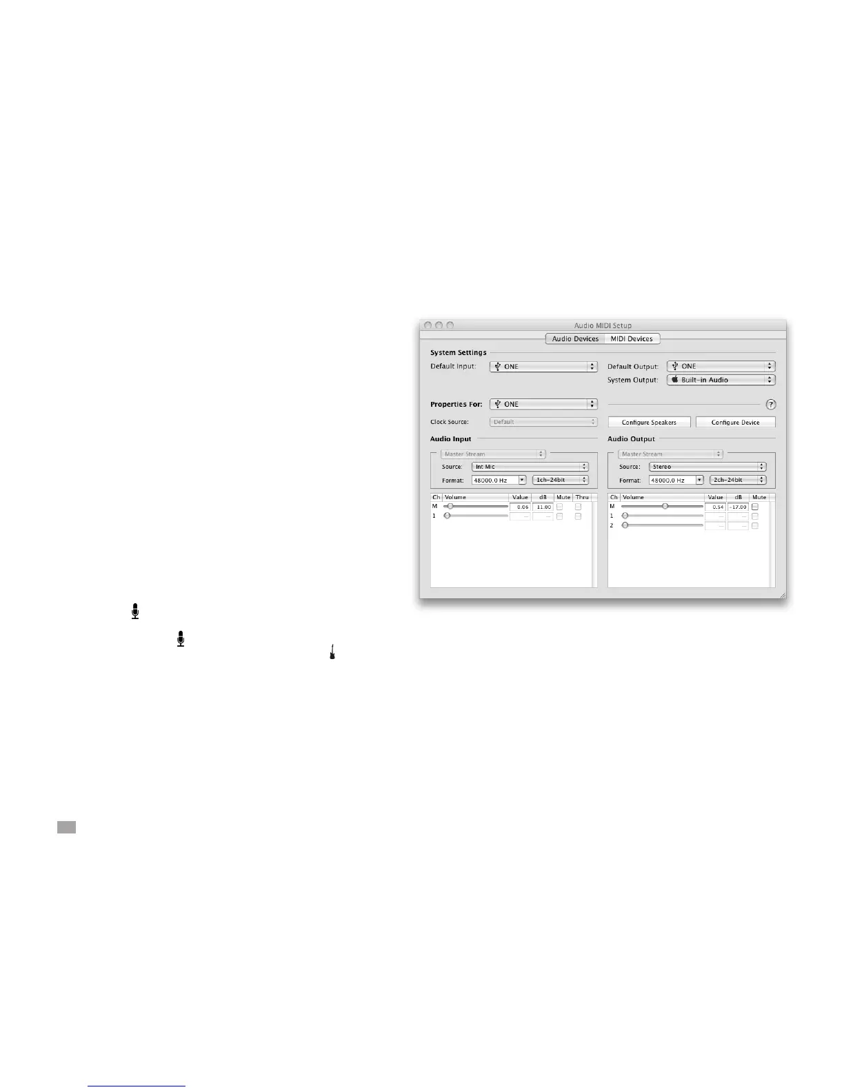 The OS X utility Audio MIDI Setup provides settings to choose ONE