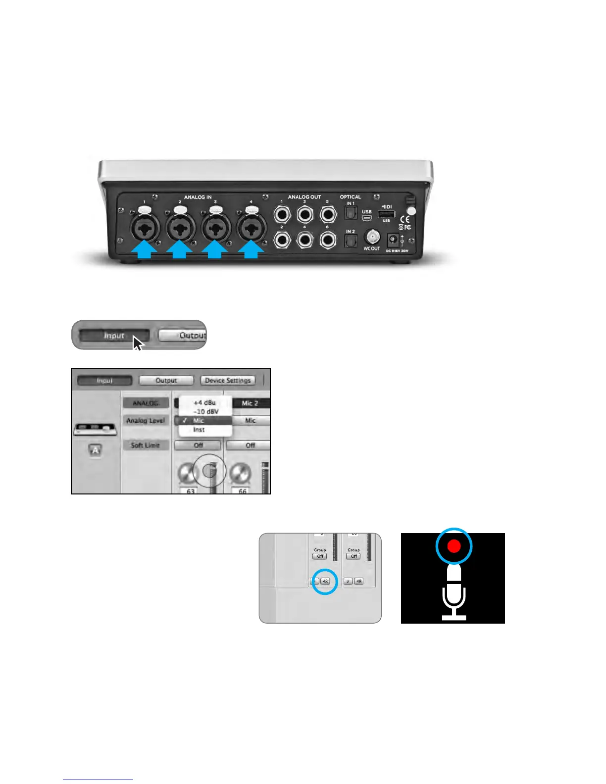 Connect a microphone or instrument to one of the combo jacks on the rear panel