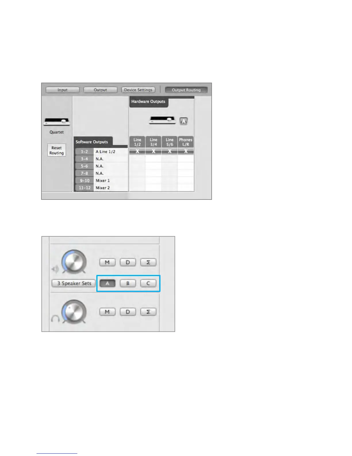 When the “3 Speaker Sets” option is selected, Software Outputs 1-2 are routed to Hardware Outputs