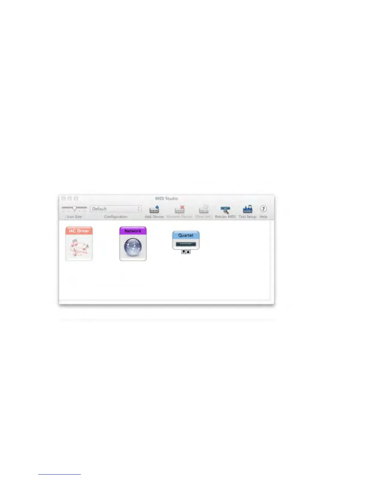 Quartet’s USB MIDI input/output provides a MIDI connection between class compliant Core MIDI