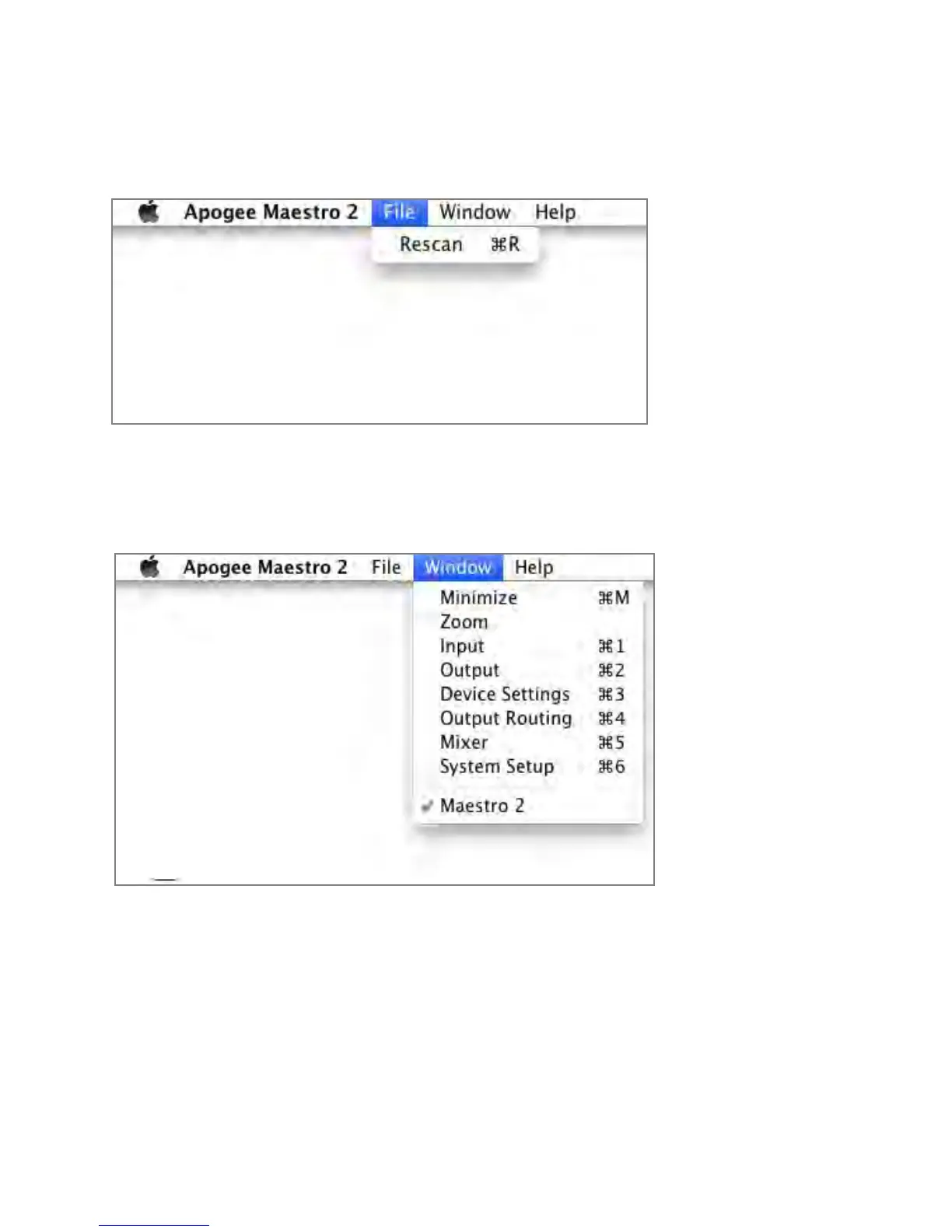 Rescan - Choose this menu item to re-initialize the link between Maestro software and Apogee