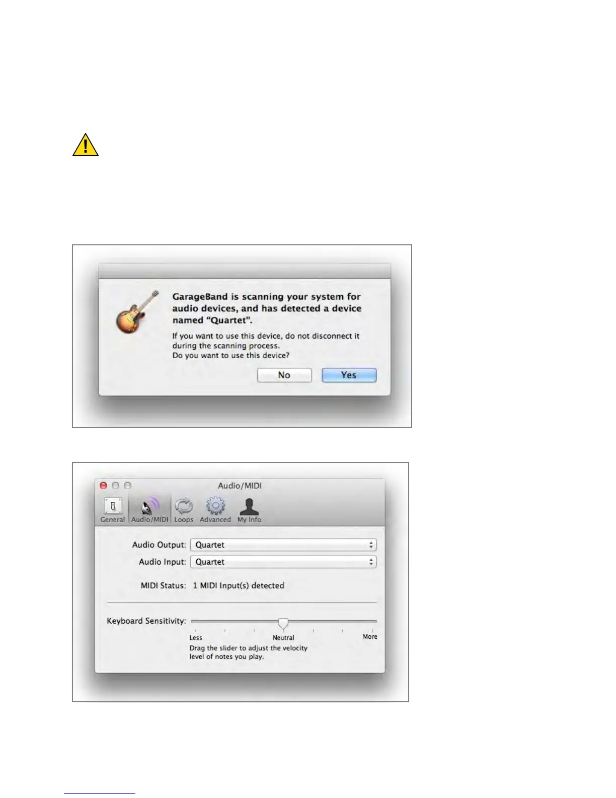 If you don’t have Quartet connected when you launch GarageBand, when you connect the device, the