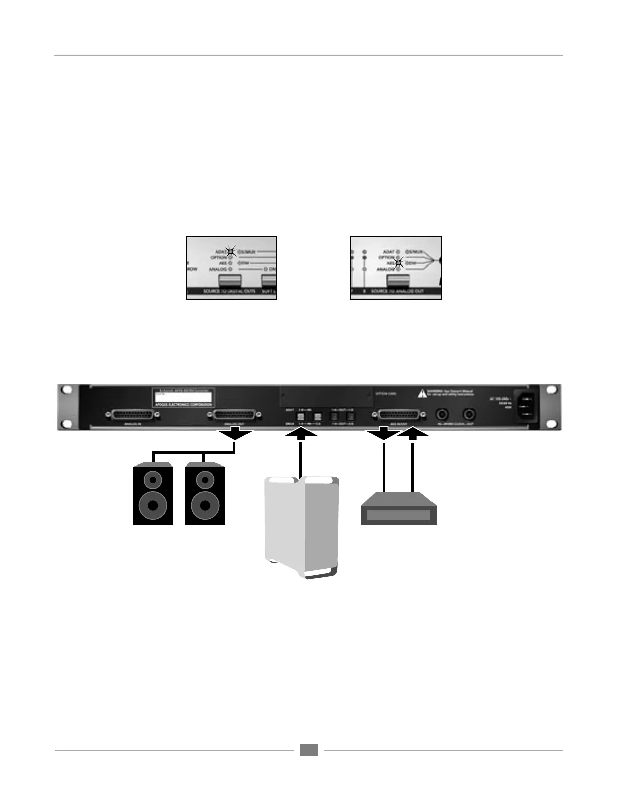 the AES device output via the ANALOG OUTs, make the FRONT PANEL SELECTIONS and REAR PANEL