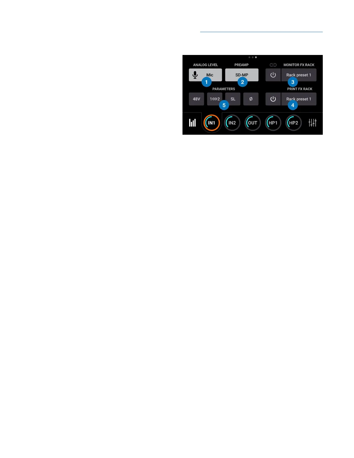 3. Monitor FX On/Off & Preset Select - Enable Apogee Channel FX processing in the Monitor path
