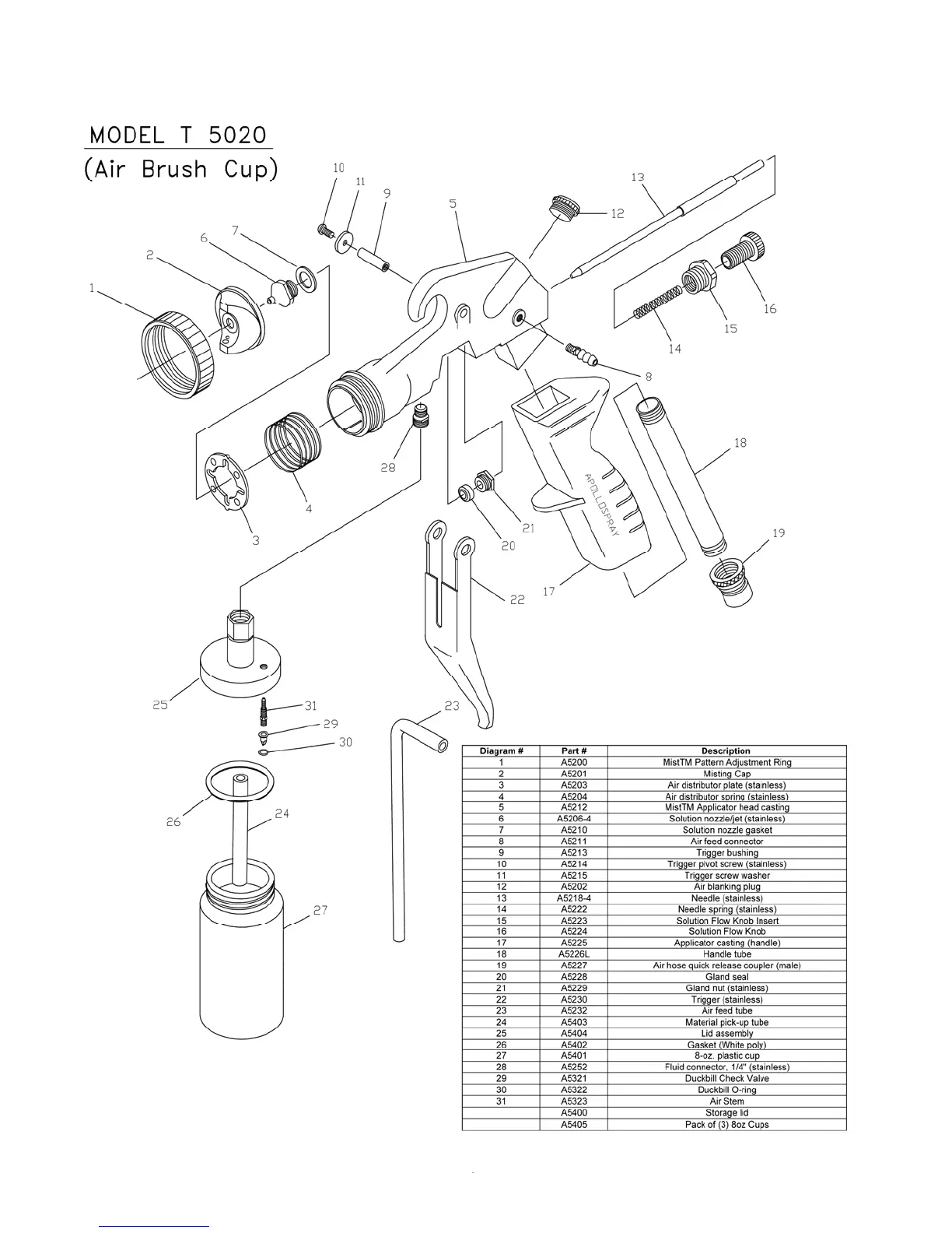 Apollo Sprayers T5020 MIST APPLICATOR - T5020 Diagram and Parts List