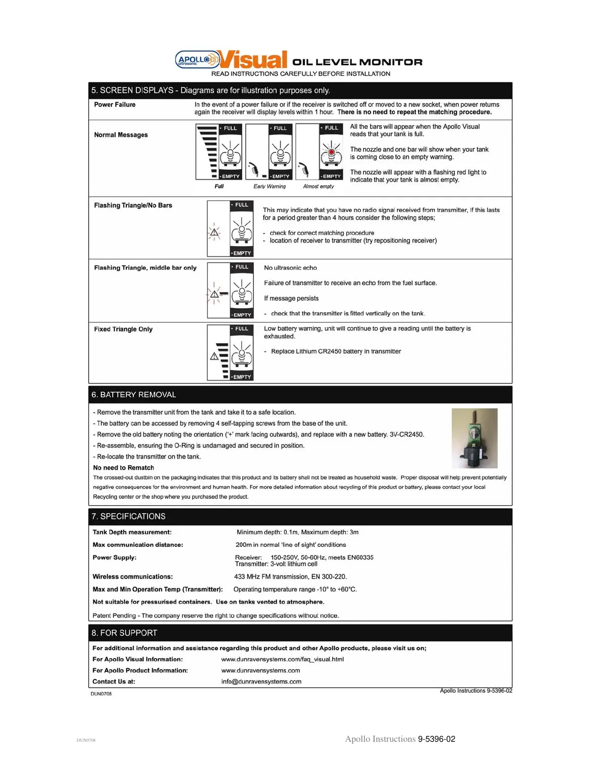 Apollo Ultrasonic Visual - Screen Displays and Troubleshooting; Power Failure Display; Normal Messages; Flashing Triangle;No Bars