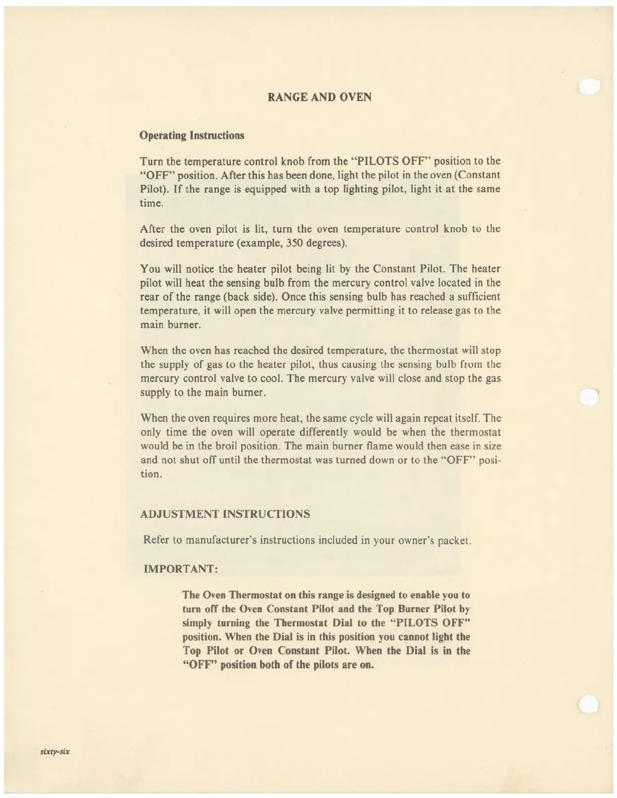 Oven Thermostat on this range is designed to enable you