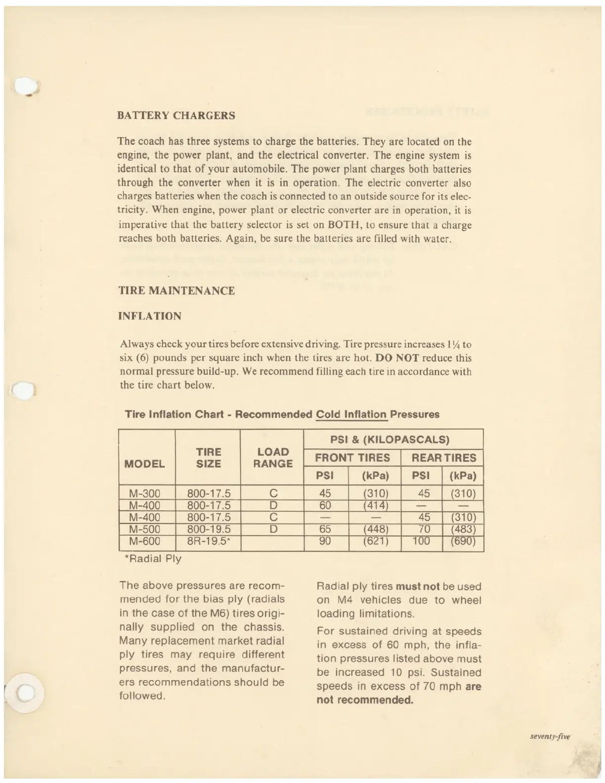 extensive driving. Tire pressure
