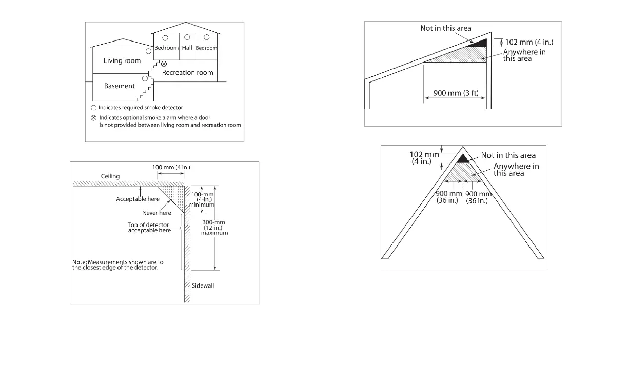 Figure 11 - Example of proper mounting for detectors with peaked ceilings