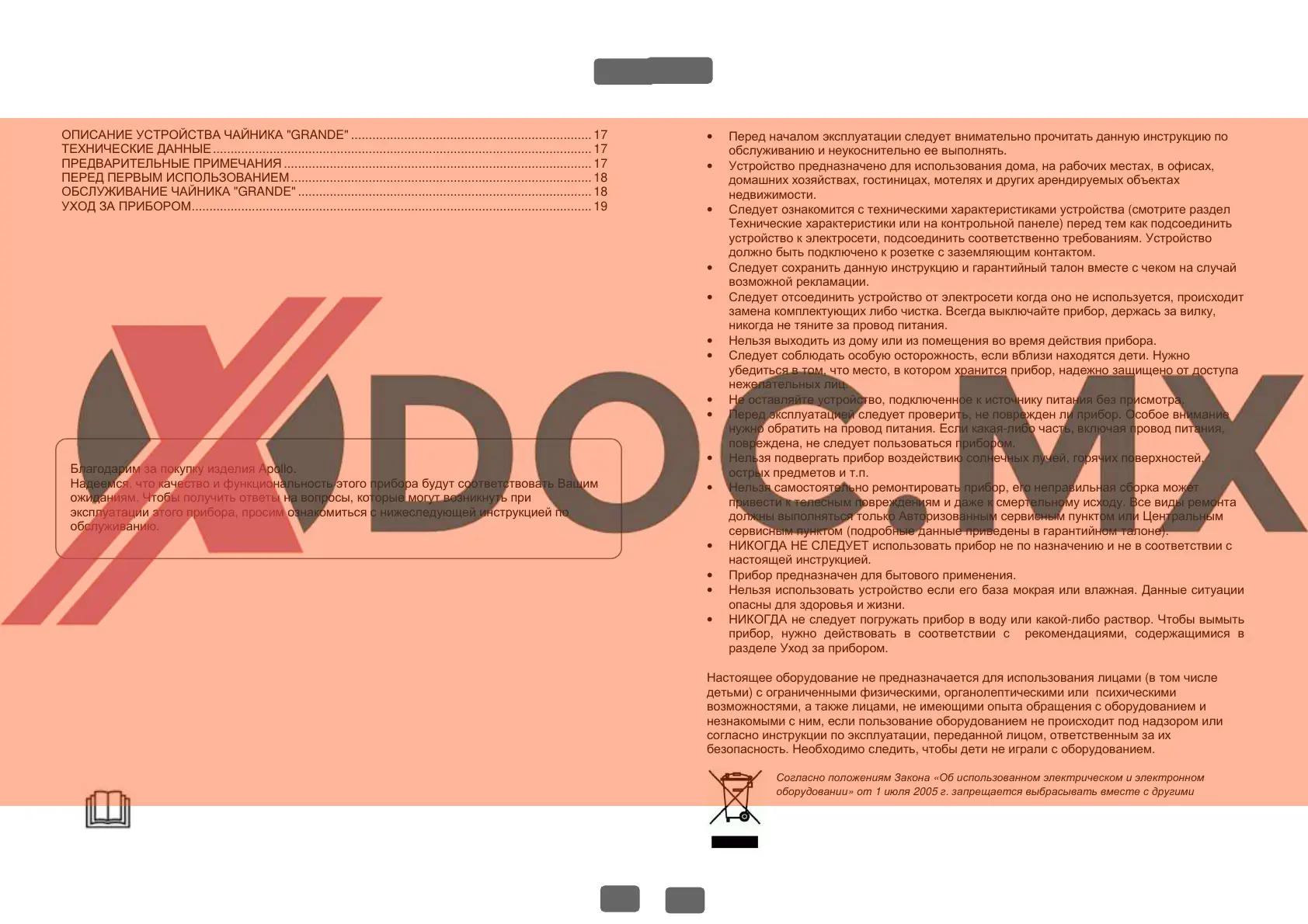 ОПИСАНИЕ УСТРОЙСТВА ЧАЙНИКА "GRANDE" .................................................................... 17