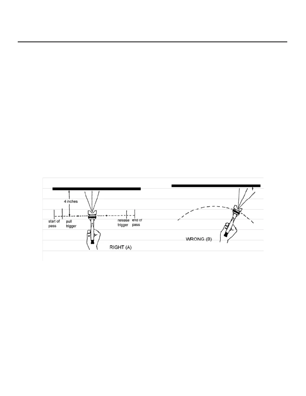 f. Pull back on the trigger (#13) and move the Spray Gun as noted in the diagram below. Do not wave the