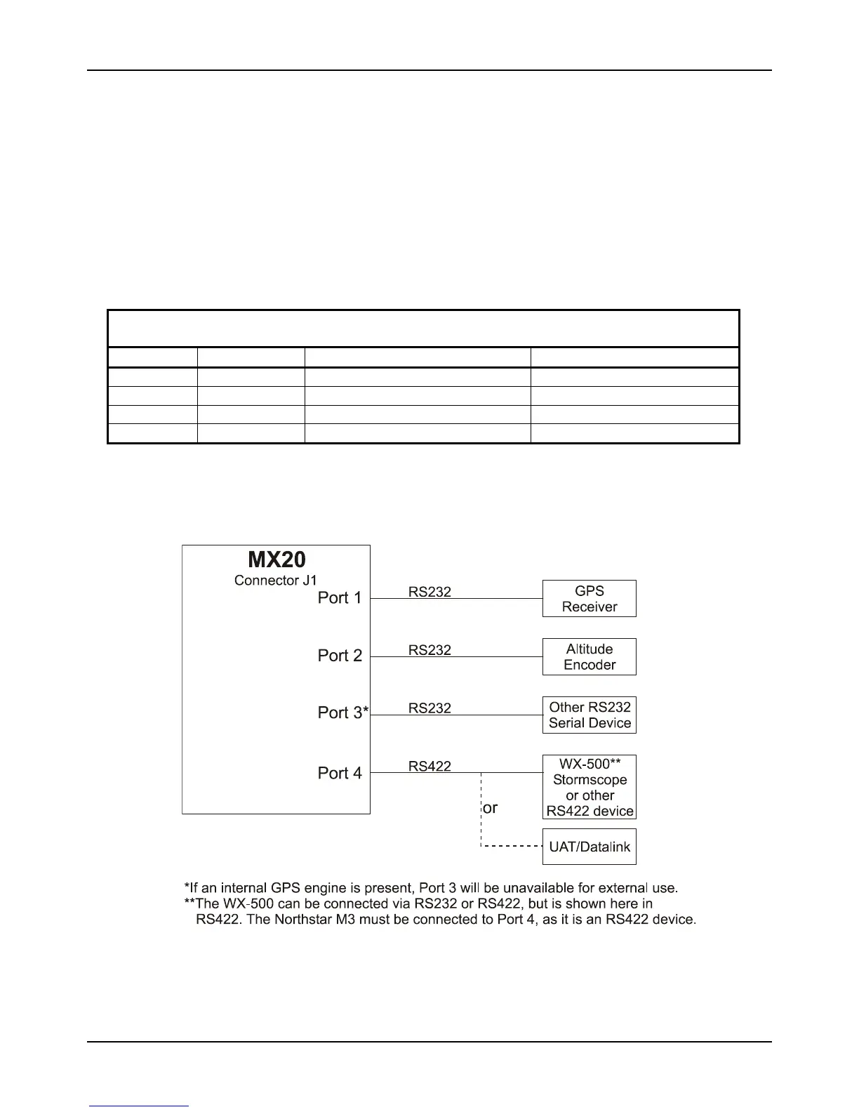 PORT 4 RS422 UAT Datalink Radio or option WX-500 or option