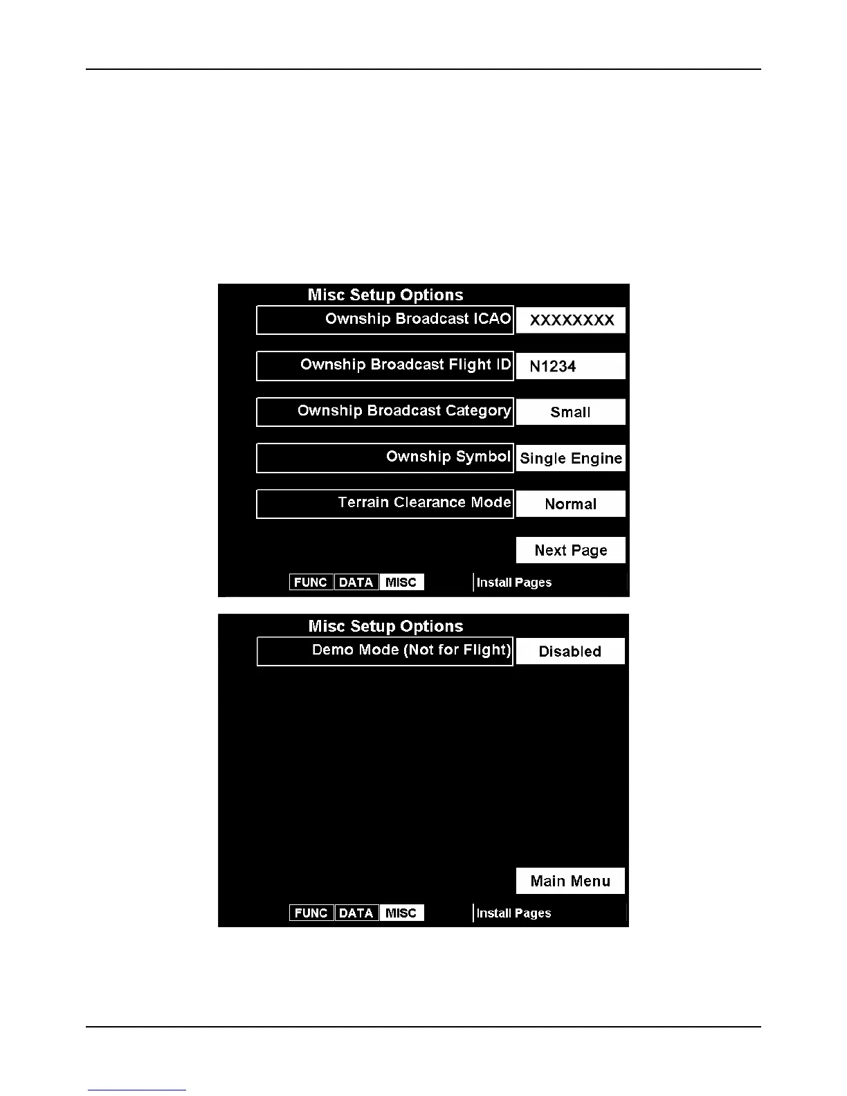 2. Ensure the Misc Setup Options pages of the MX20 are configured with respect to the aircraft it is