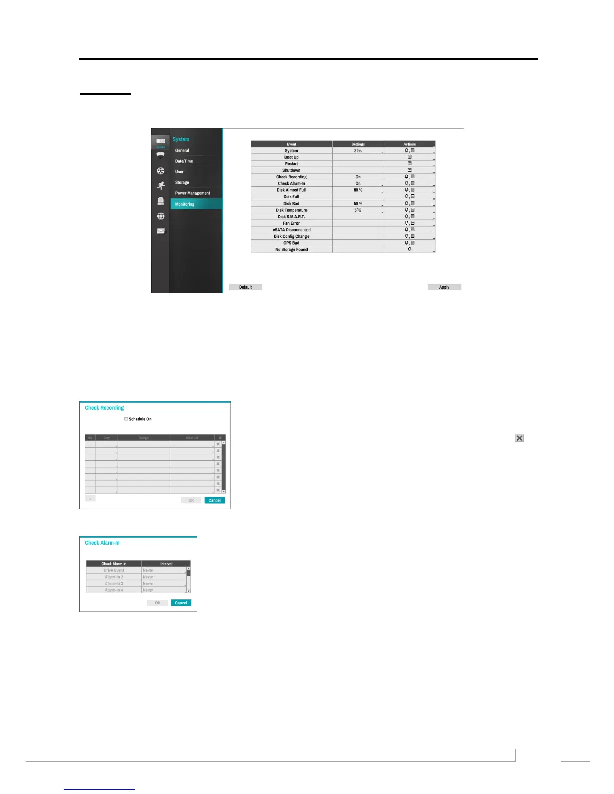 Select the Settings box beside the desired event (System, Check Recording, Check Alarm-In, Disk Almost Full,