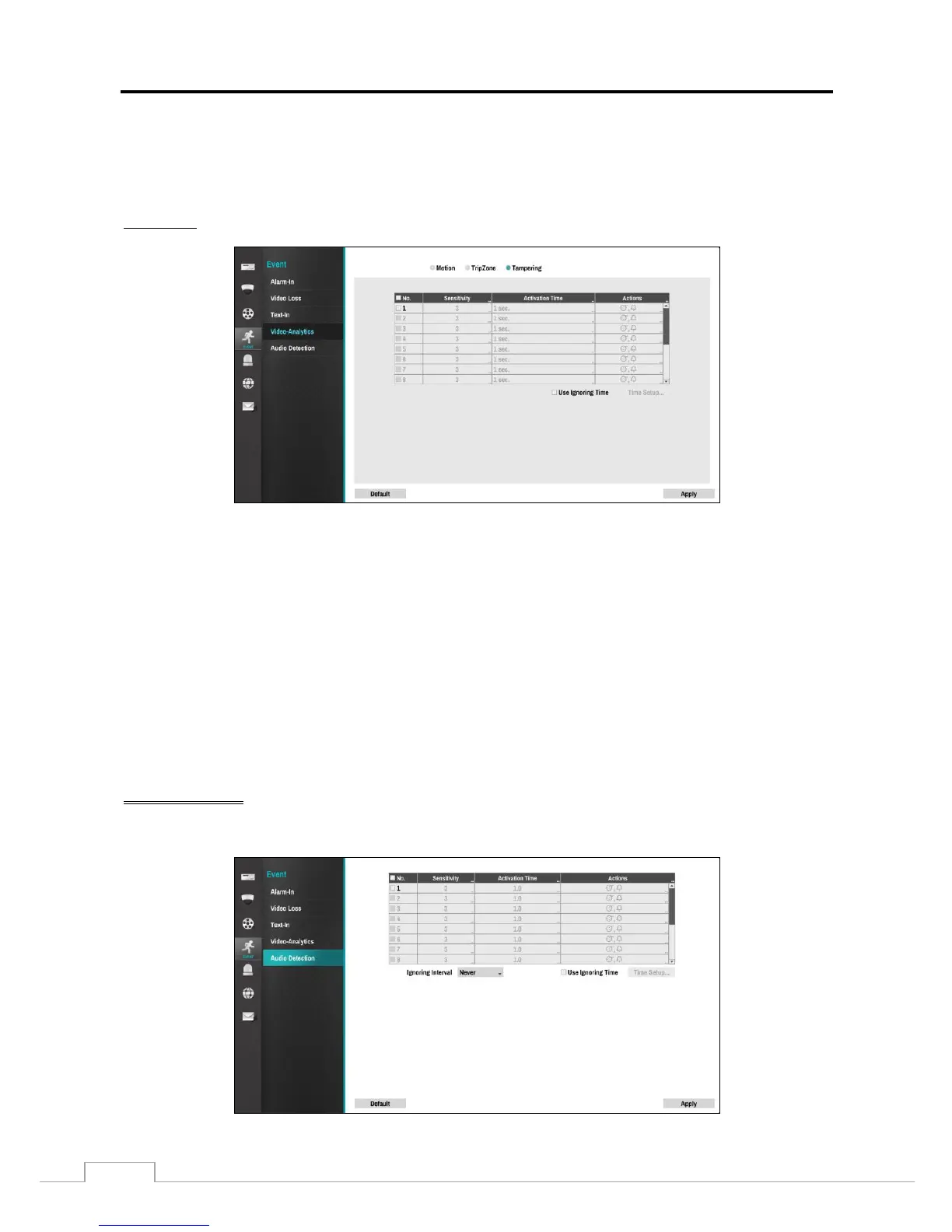Select the box under Actions. The Recorder can be set to react to tampering detection differently for each camera.