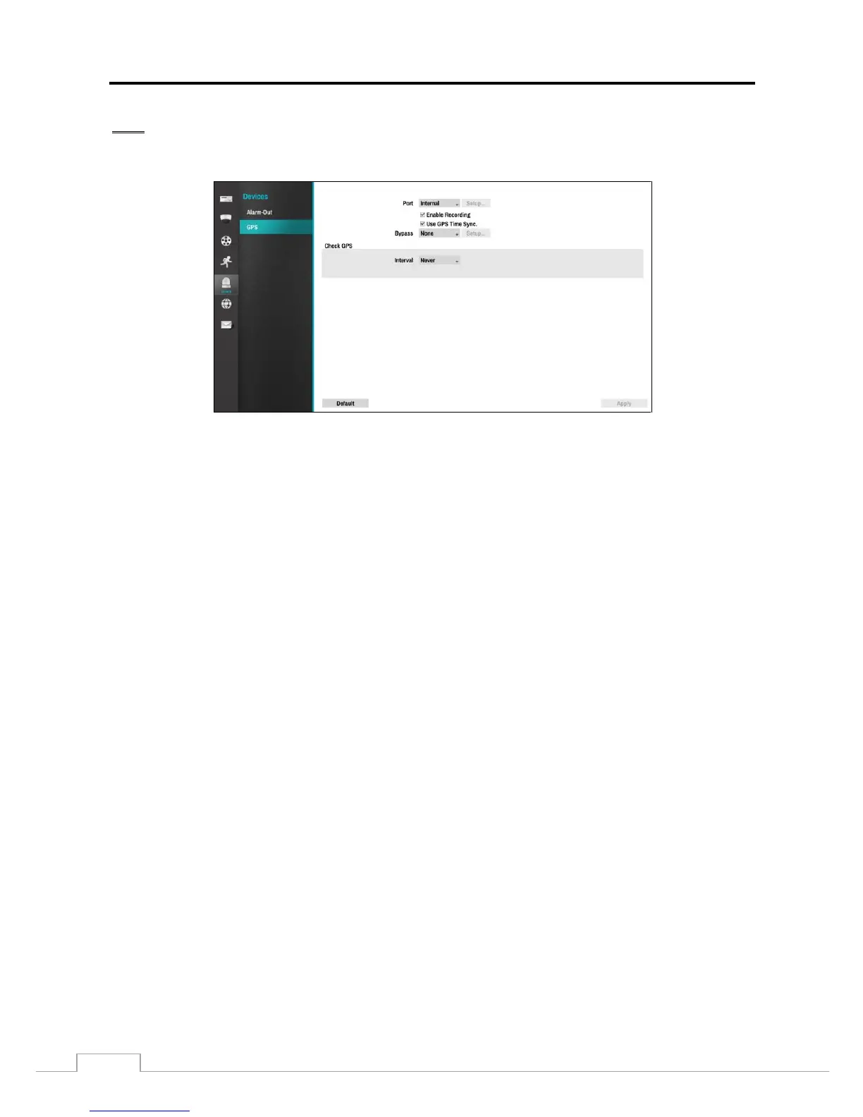 Select the box beside Check GPS - Interval to define GPS loss detection time. The Recorder will log and notify