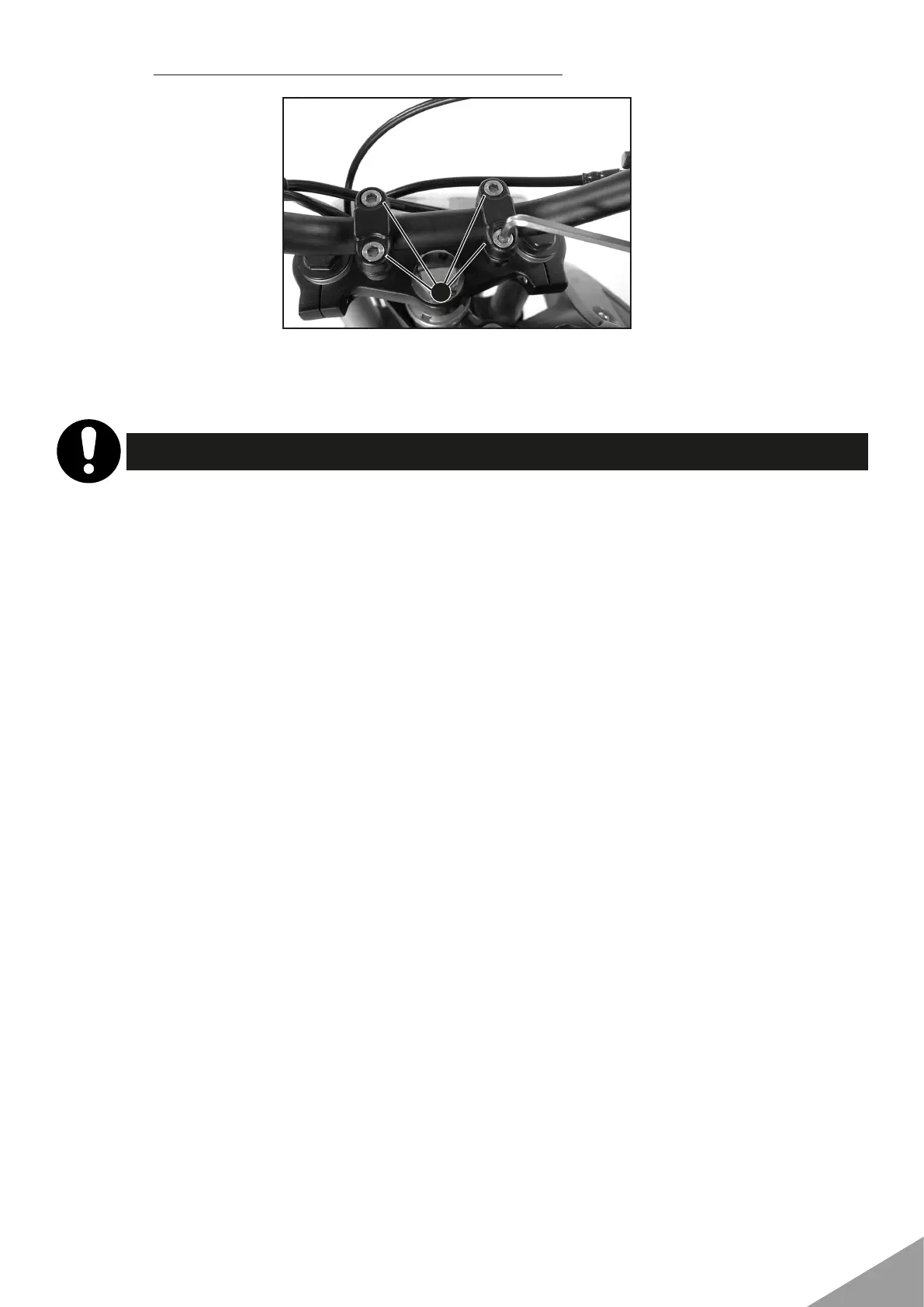 and tighten screws 1 to 29 Nm. The gap between the handlebar support and handlebar clamps should