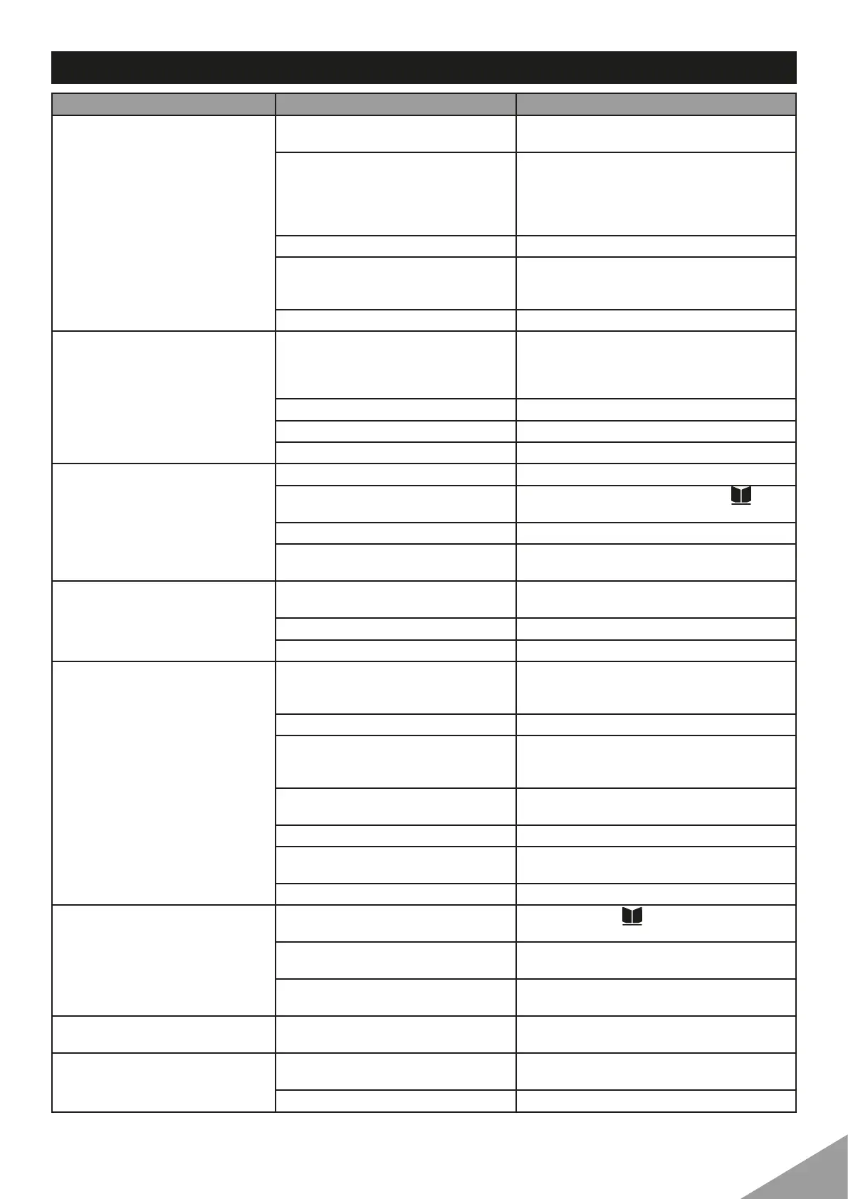 Faults Possible cause Action