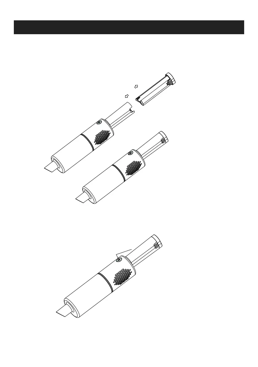 a) Assemble the battery pack into the dust cup, make sure the battery bolt head is inserted