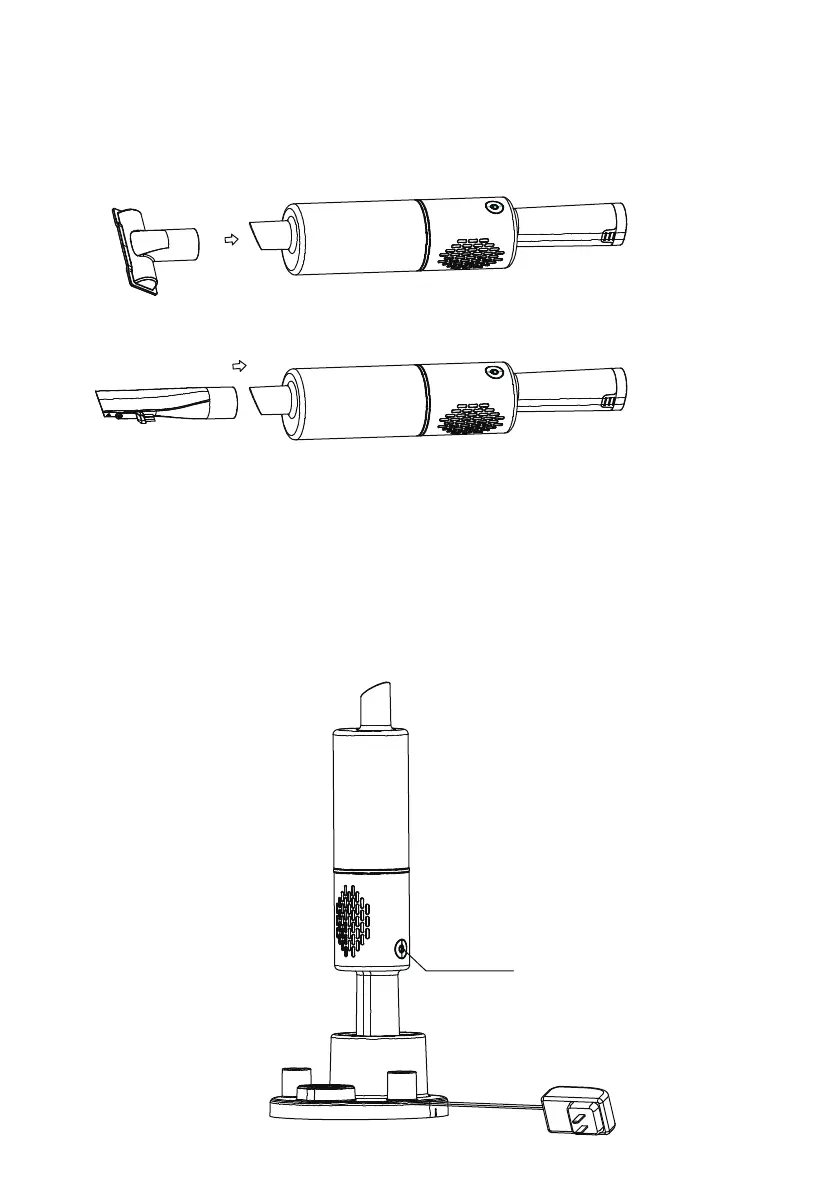 Insert the accessory( sofa brush or 2 in 1 brush) to the body as below showed