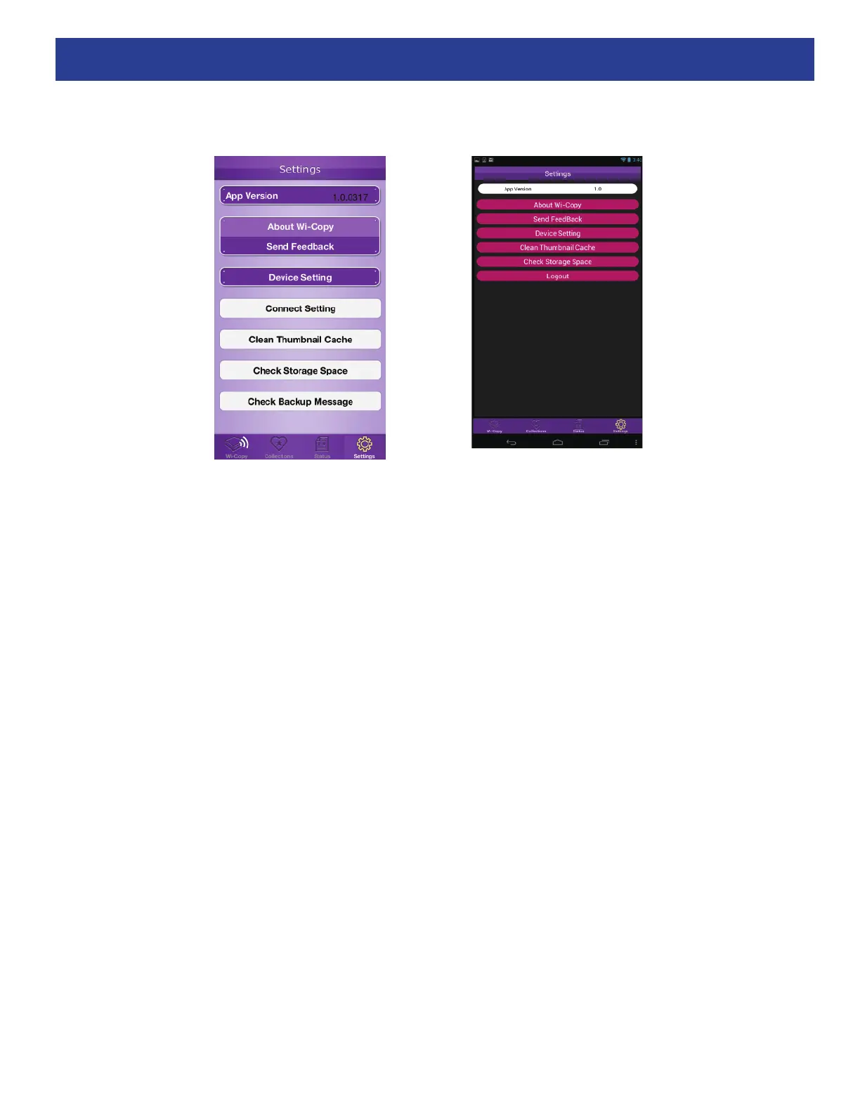 Send Feedback: Tap to send feedback about Wi-Copy or the Wi-Copy app.