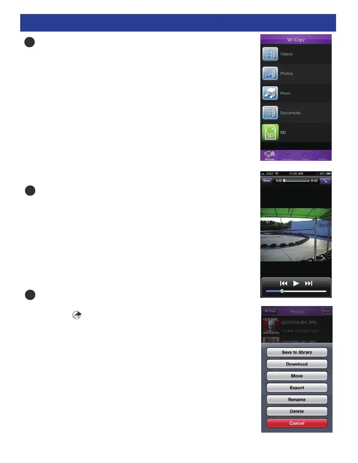 Tap the Wi-Copy App to open the App. You will see five items: