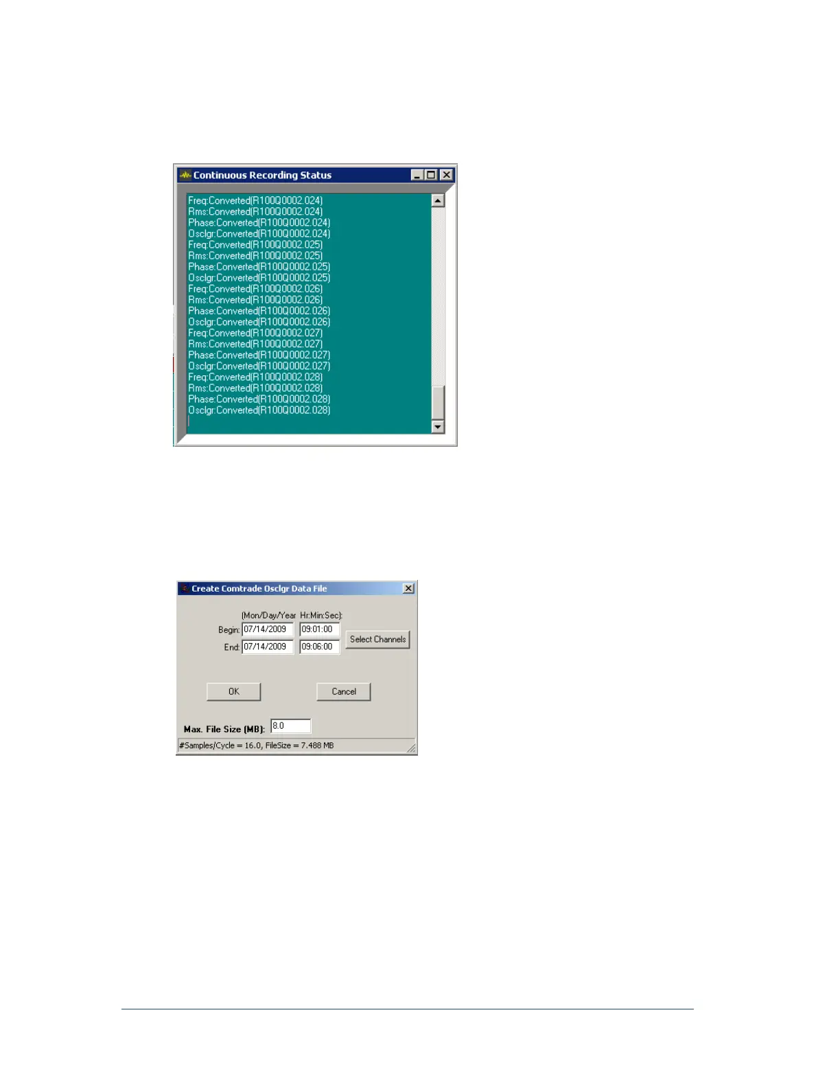 Oscillograph and then click “Save Oscillograph Data…”. The following window appears.