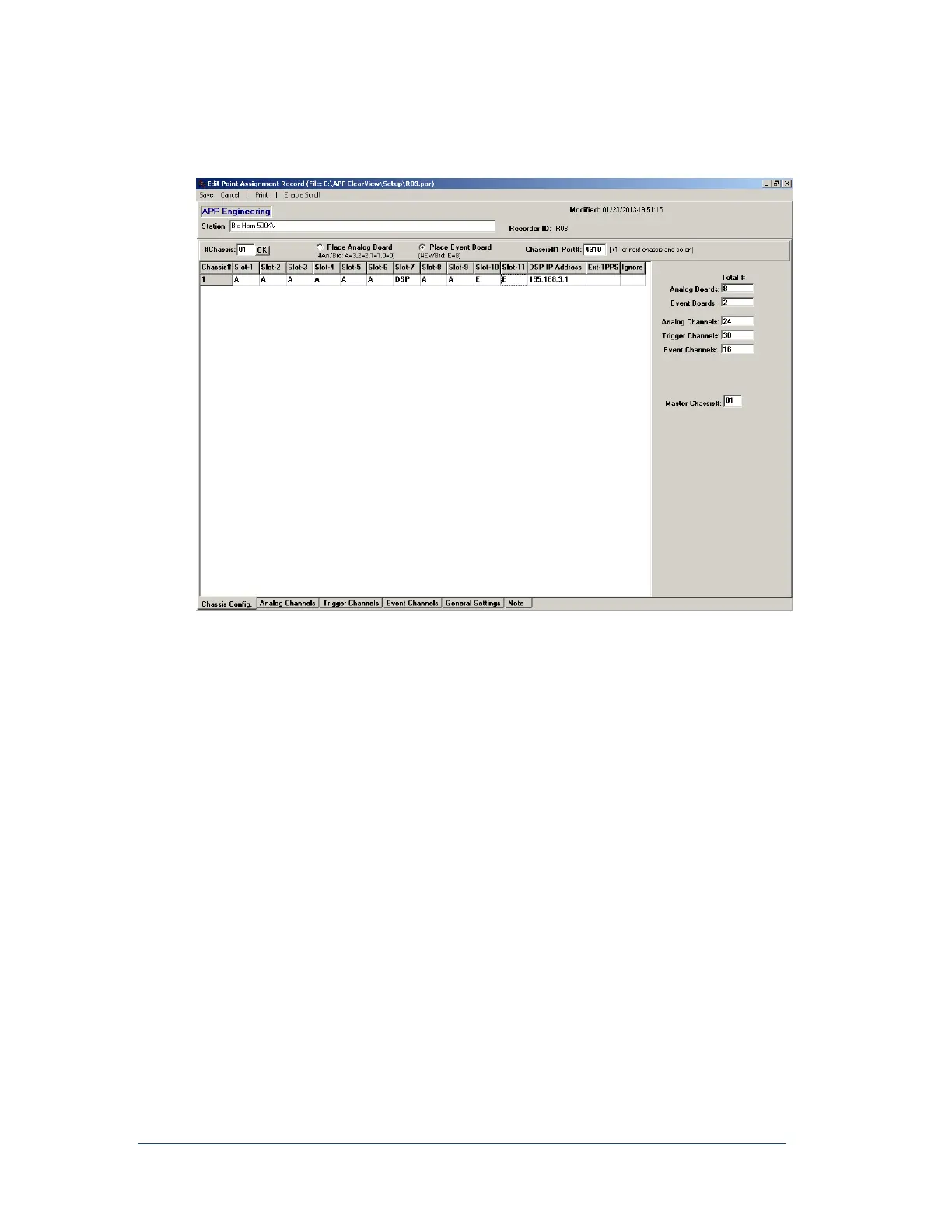 20. After the chassis and slot information are entered, the number of Analog Boards, Event Boards,