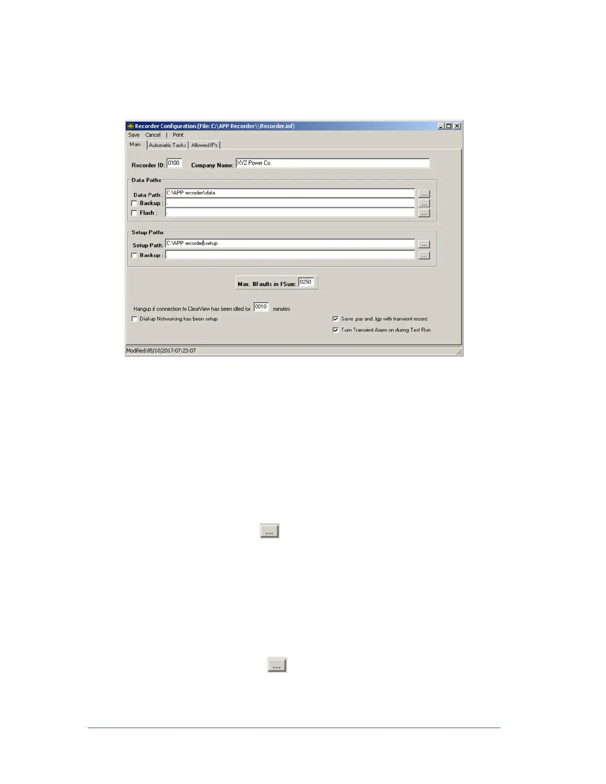 Figure 26: Example of APP 601 Recorder Configuration Window—Main Tab