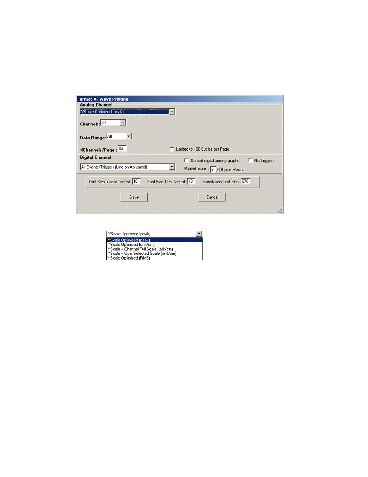 oscillogram printed. The value is based on a user entered Yscale (unit/cm). If the scale is too