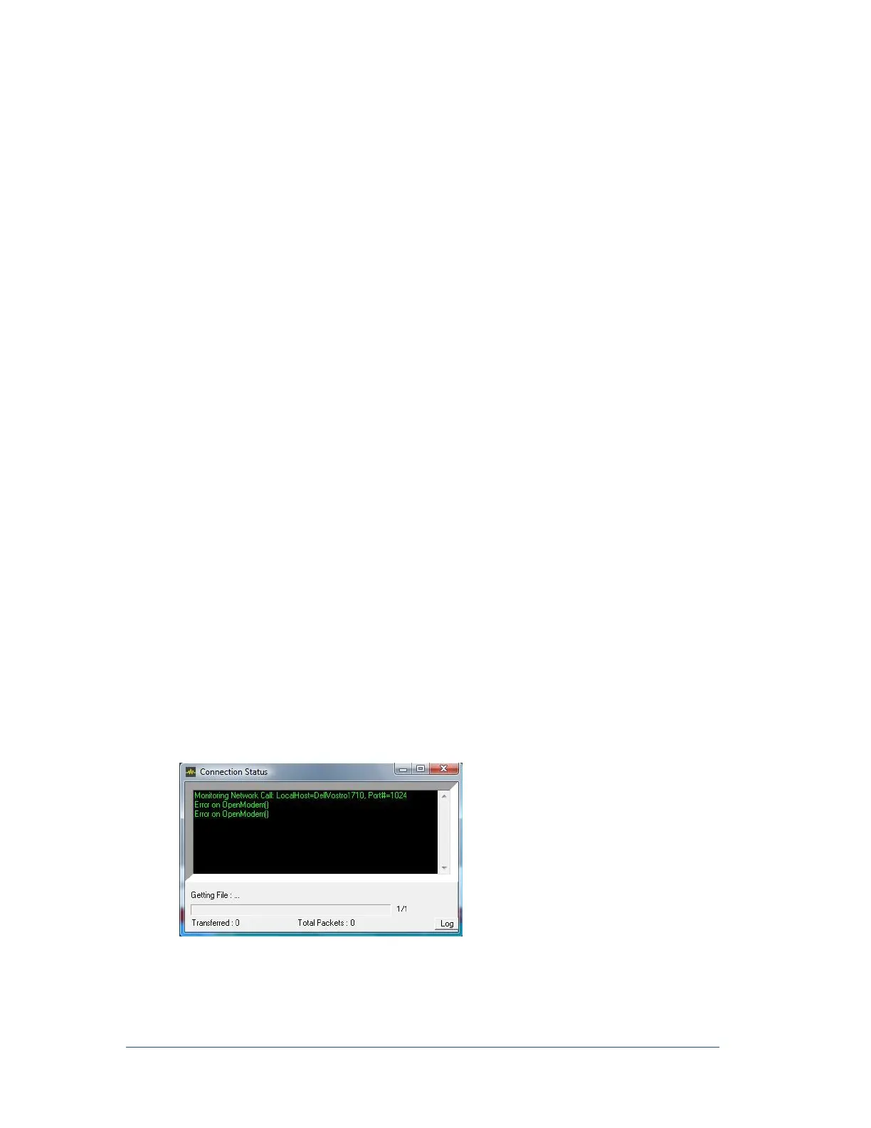 communications and data transfer progress between the computers in the Connection Status window. This