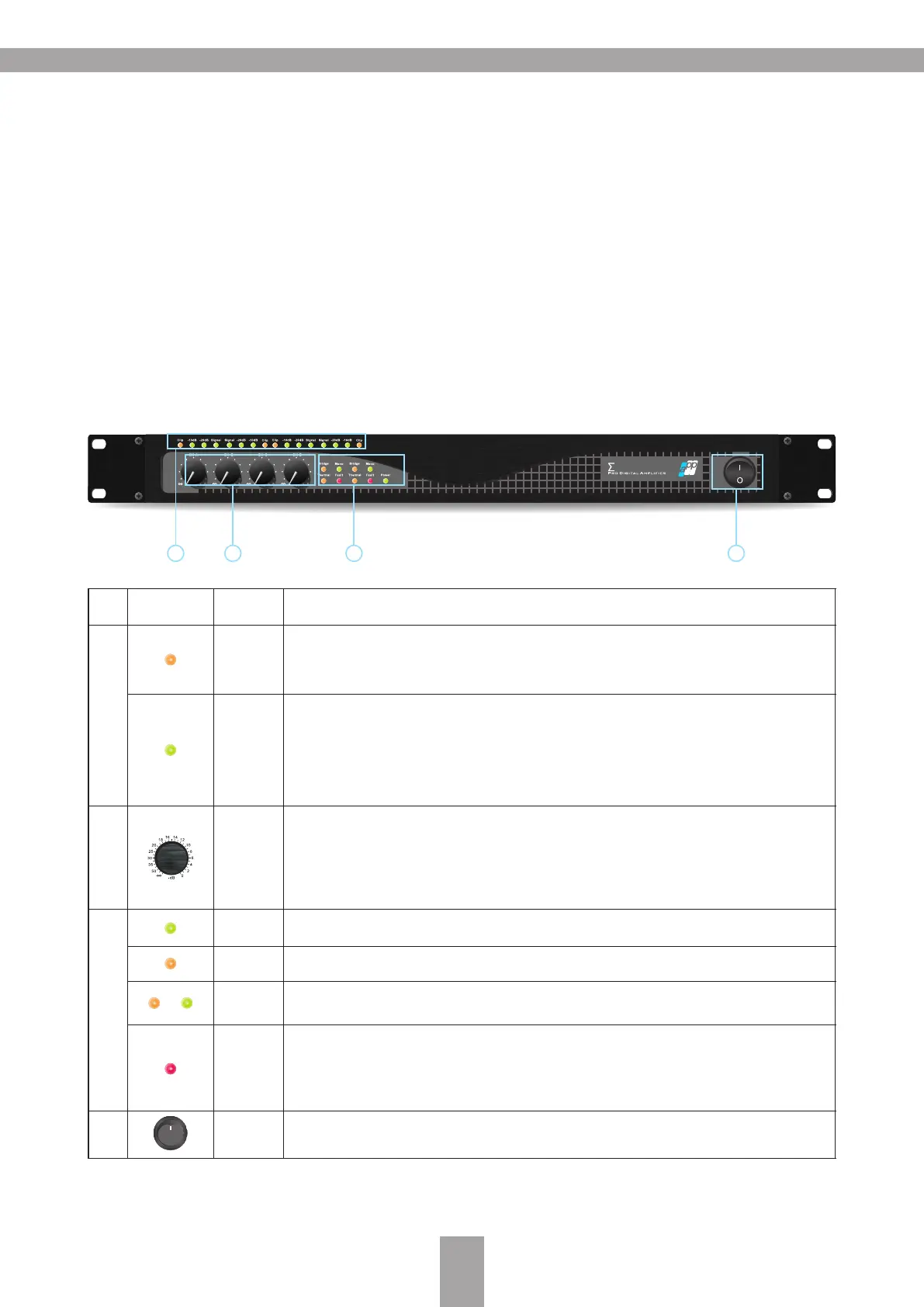 reduce the gain. If the LED remains on, shows that the amplifier needs servicing.