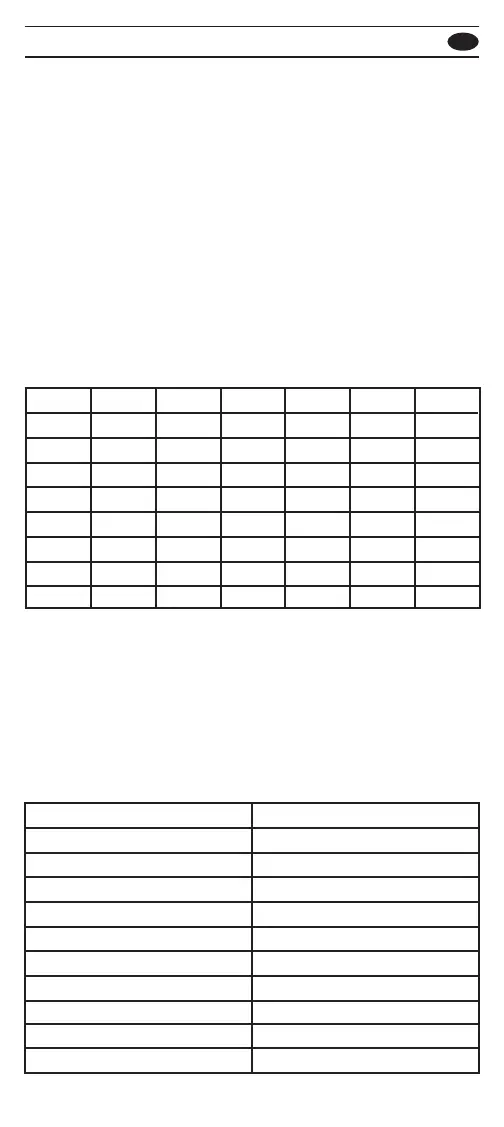次の表に、各測定モードの各範囲のコードを示します。