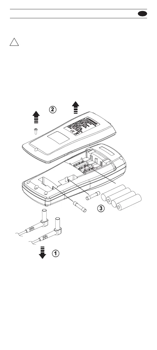 • Remove test lead from meter before opening the