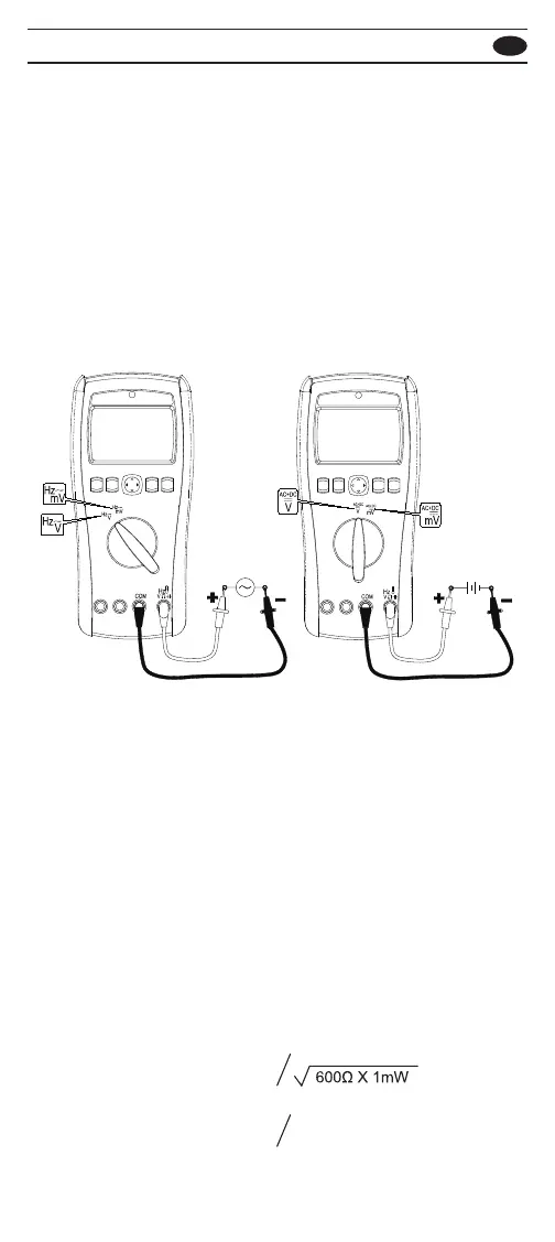 本儀器可以 dB 值顯示電壓,可選擇相對於 1 毫瓦
