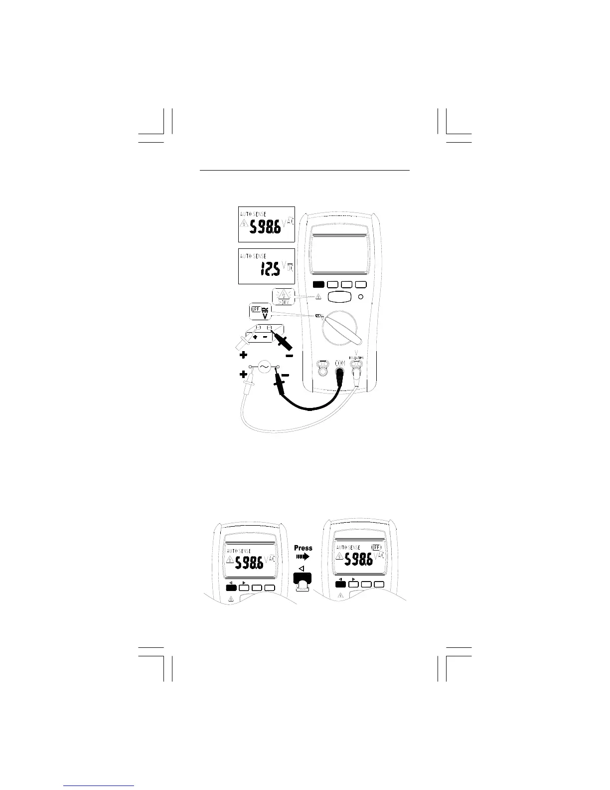 Auto sense mode: The meter displays ACV or DCV whichever