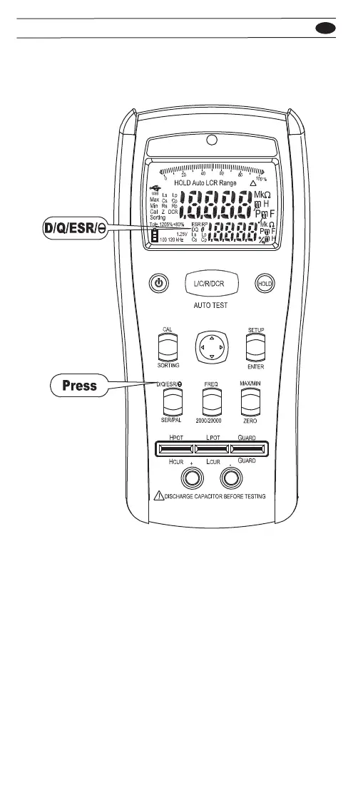 • Нажмите кнопку D/Q/ESR/θ чтобы выбрать функцию