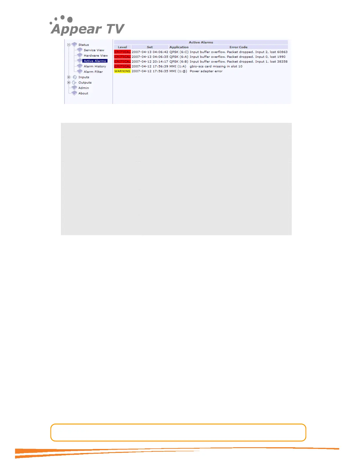 Expand the Status folder in the navigation pane and click the Alarm History icon.