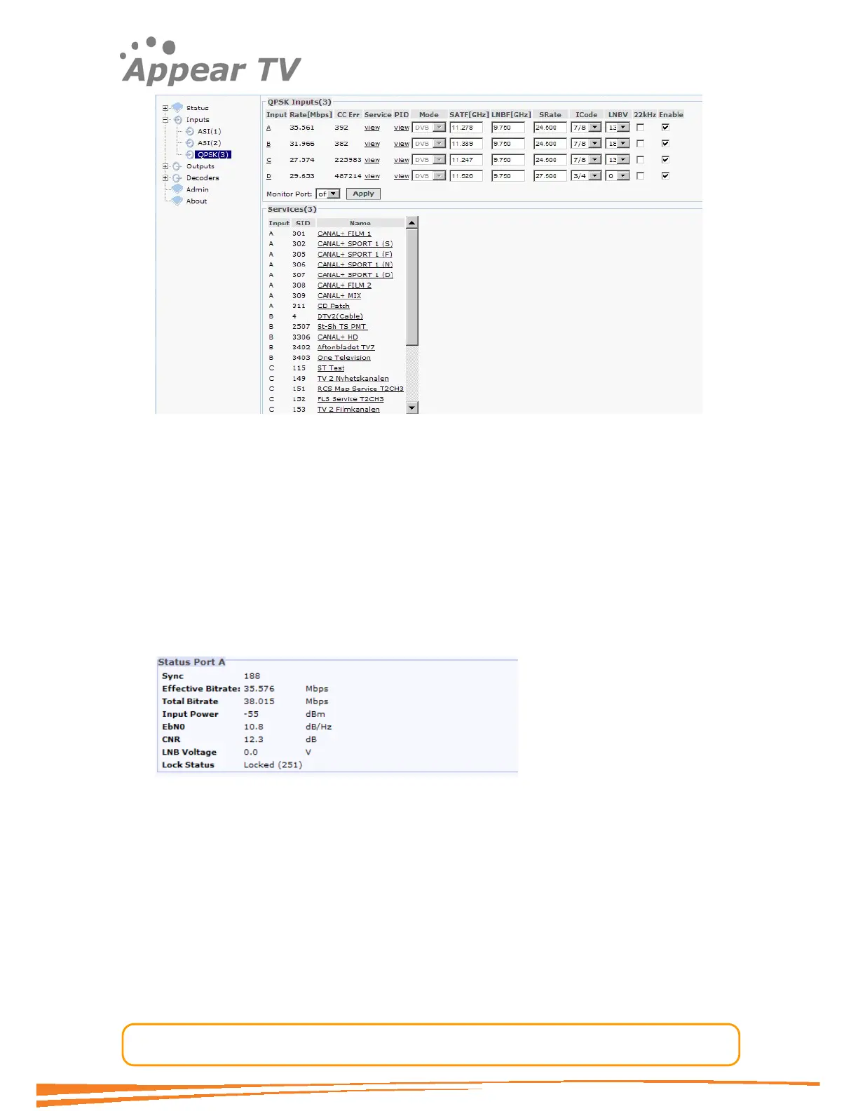 The QPSK port detailed view:
