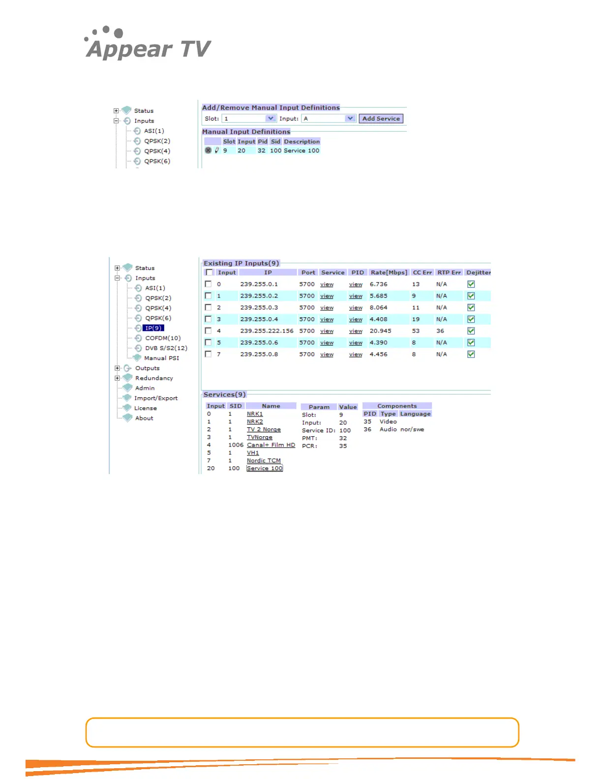 MPTS Support: If multiple services are defined for one input it effectively represents