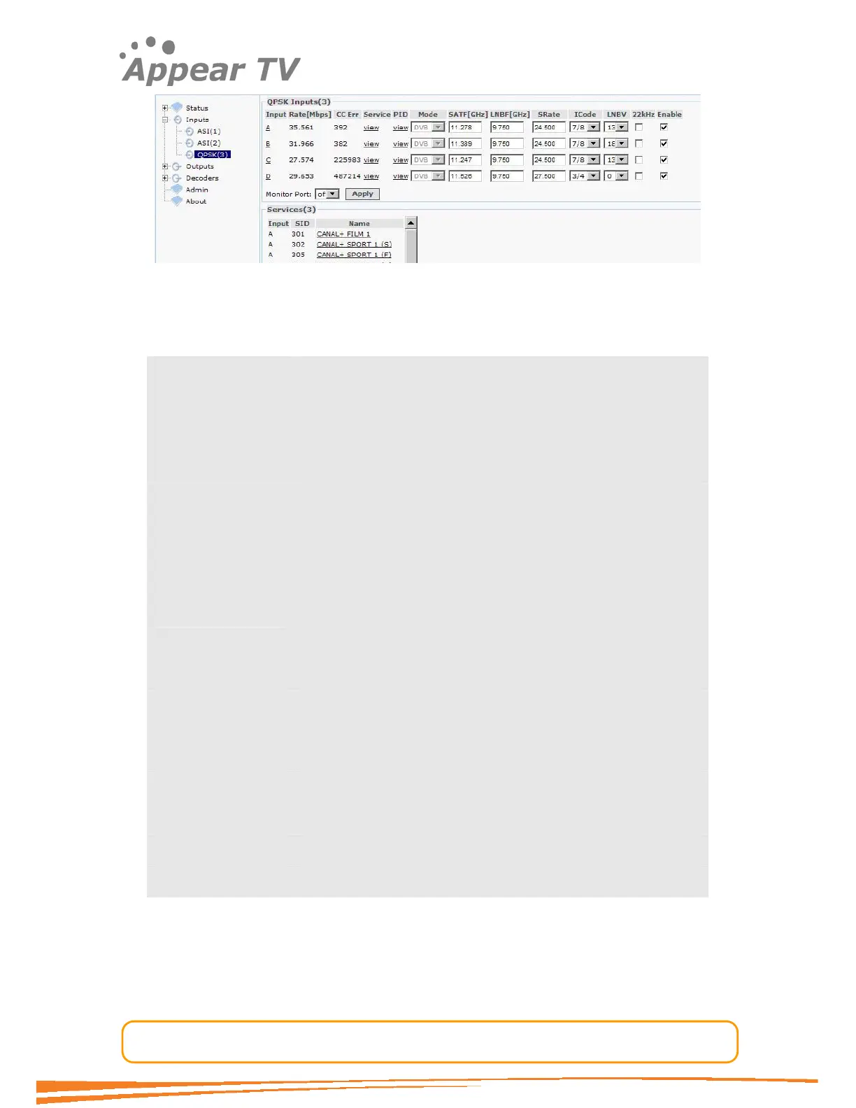 can be assigned to the output ASI monitor interface. The demodulated QPSK input