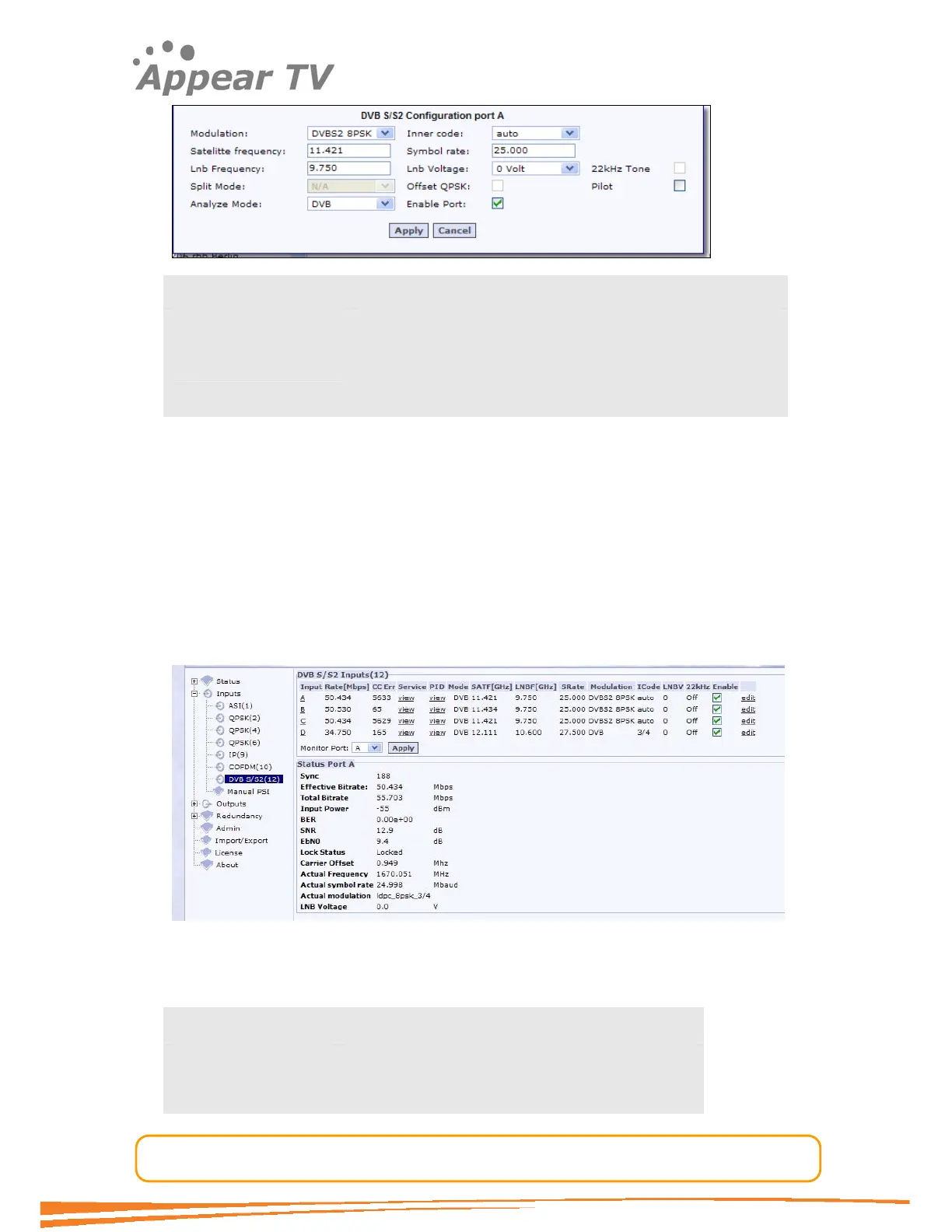 ports can be assigned to the output ASI monitor interface. The demodulated DVBS2